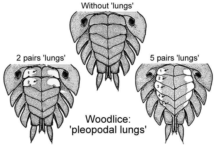 Turn a LIVE woodlouse upside down and look on the underside of the pleon (the last 5 legless body segments). The 'pleopodal lungs', if present, are apparent as distinct white dots.
