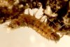 Polyxenus lagurus a very distinctive short dumpy millipede (some 2-3 mm in body length) with a pale brown body amoured with characteristic tufts and rows of bristles. When adult it has just 9 body tergites and 13 pairs of legs. It cannot be confused with any other British or Irish millipede. However, it is similar in appearance to the larva of the Cobweb Beetle Ctesias serra which inhabits similar microsites under the bark of old trees. Its small size and nocturnal habits mean that it is often overlooked.